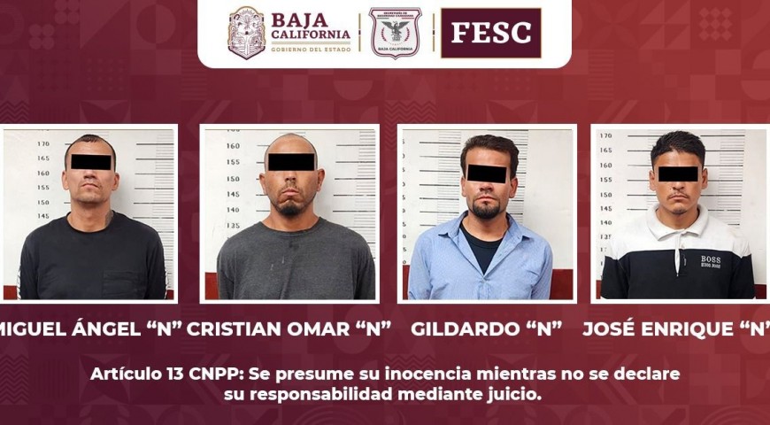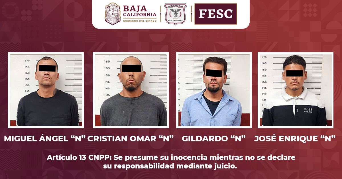 Al aproximarse a interrogar a los ocupantes, identificados como José Enrique “N”, de 28 años y originario de Mexicali, Gildardo “N”, de 40 años y originario de Jalisco, Cristian Omar “N”, de 37 años y originario de Mexicali y Miguel Ángel “N”, de 31 y originario de Sinaloa, la autoridad estatal notó que mostraban nerviosismo, por lo que se les pidió que descendieran del auto.