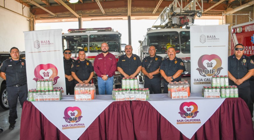 APOYA El GOBIERNO DE BAJA CALIFORNIA A TRAVÉS DEL SISTEMA DIF BAJA CALIFORNIA A BOMBEROS DE MEXICALI CON 1,000 BEBIDAS HIDRATANTES, 180 BOTELLAS DE AGUA Y 400 SUEROS VIDA ORAL.