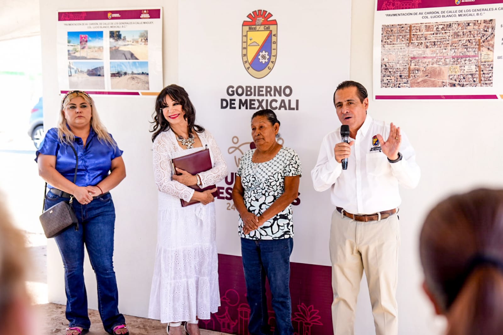 Mexicali, B.C. A 29 de agosto 2024 / Redacción.- Atendiendo una de las peticiones más solicitadas por los habitantes de la colonia Lucio Blanco, la presidenta municipal Norma Bustamante dio banderazo de arranque a la obra de pavimentación de la Av. Cardón.