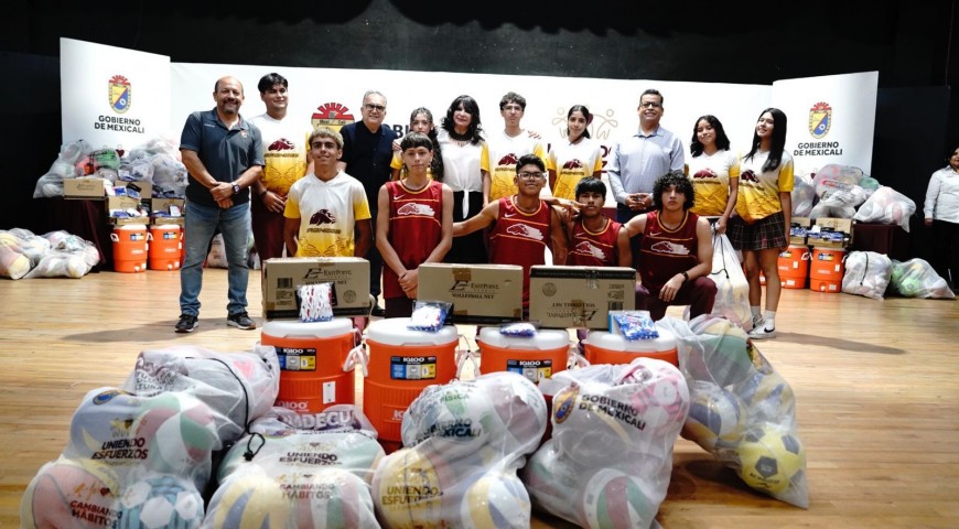 El evento de entrega se llevó a cabo en el Plantel Mexicali, en donde la primera edil indicó que el material deportivo se otorgó por medio de este programa implementado por el Instituto Municipal del Deporte y la Cultura Física (IMDECUF).
